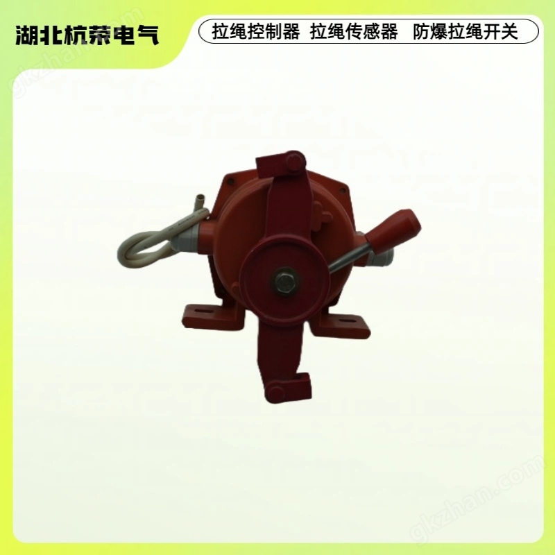 當現場發生緊急事故時,可接動開關轉臂上的鋼絲繩,啟動開關輸出一開關信號,用于告警或停機。型機有一警示牌,啟動開關時,警示牌翻轉呈垂直狀態,故障排除后,按下警示牌,拉繩開關恢復工作狀態。