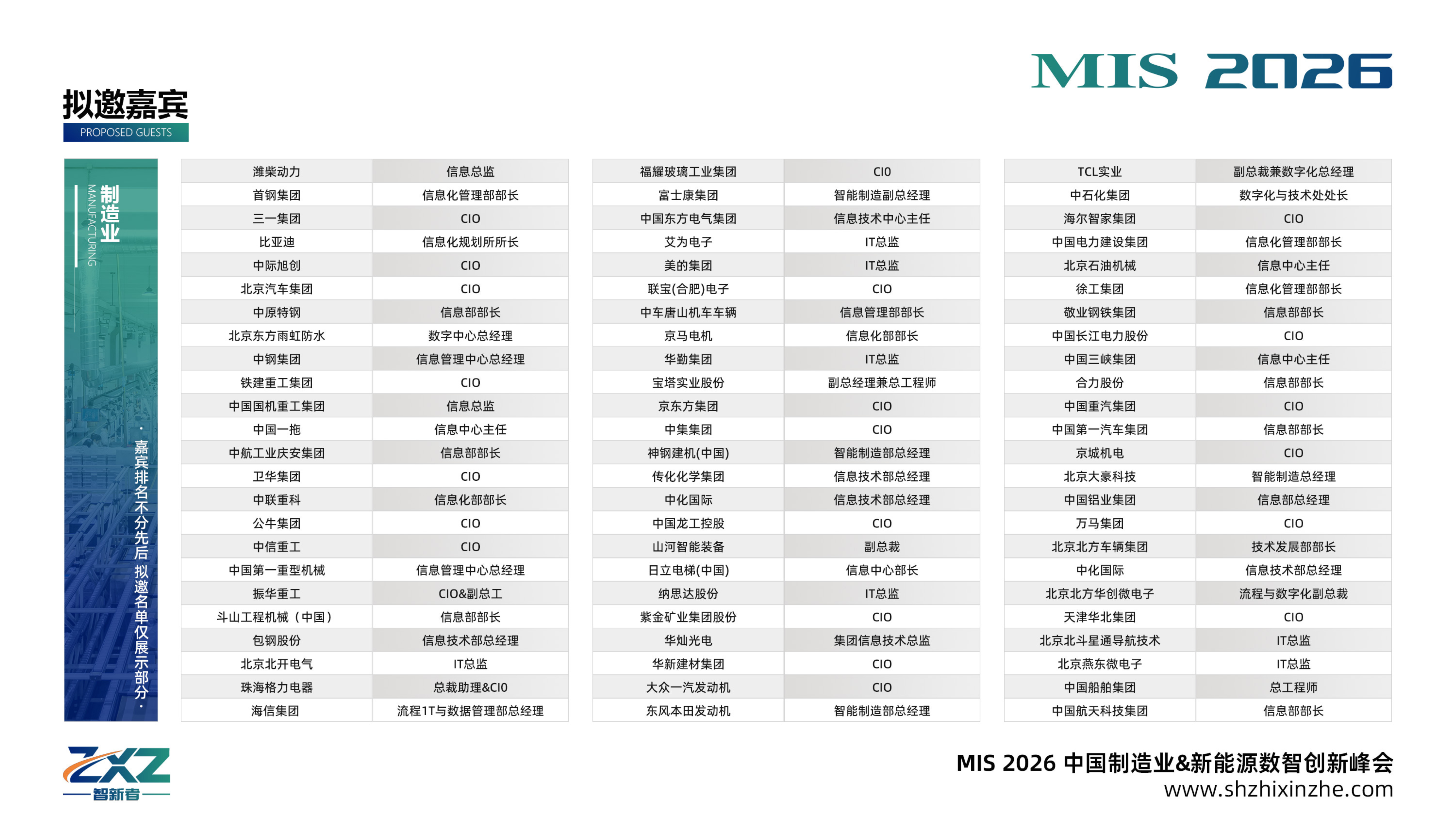 為助推中國制造業&新能源產業創新發展,進一步擴大合作,共享智慧,由智新者主辦的MIS 2026 中國制造業&新能源數智創新峰會以“智聯綠造?數聚新能”為主題,將于2026年5月29日在北京盛大開幕!大會匯聚220+來自制造業&新能源行業等知名企業高管、CIO、IT負責人、企業數智化轉型引領者、行業知名數字技術專家以及行業知名信息化服務商等行業領袖蒞臨現場。本屆峰會將聚焦大數據、AI、5G、區塊鏈、云計算、RPA、中臺建設、物聯網、智能制造、供應鏈、信息安全、系統運維、智能設備、智慧研發等當下行業熱點話題,多維度分享最新的技術進展和創新實踐,攜手探索未來制造業&新能源趨勢突破點,共同實現數字科技賦能新生態的無限可能,共同創造未來新機遇。