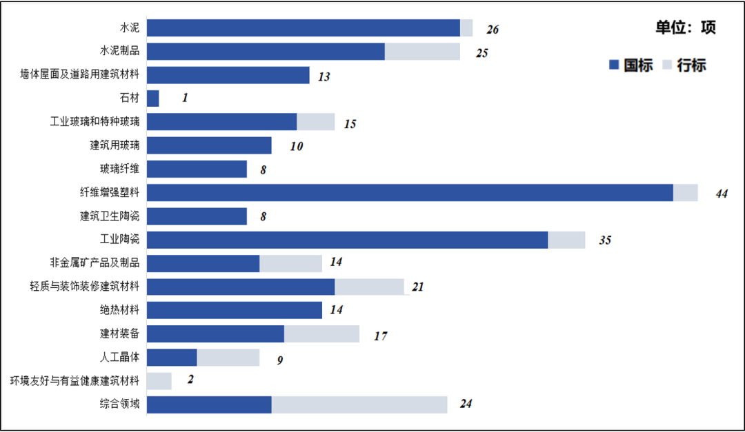 圖1 建材各專業領域現行有效的推薦性政府標準數量